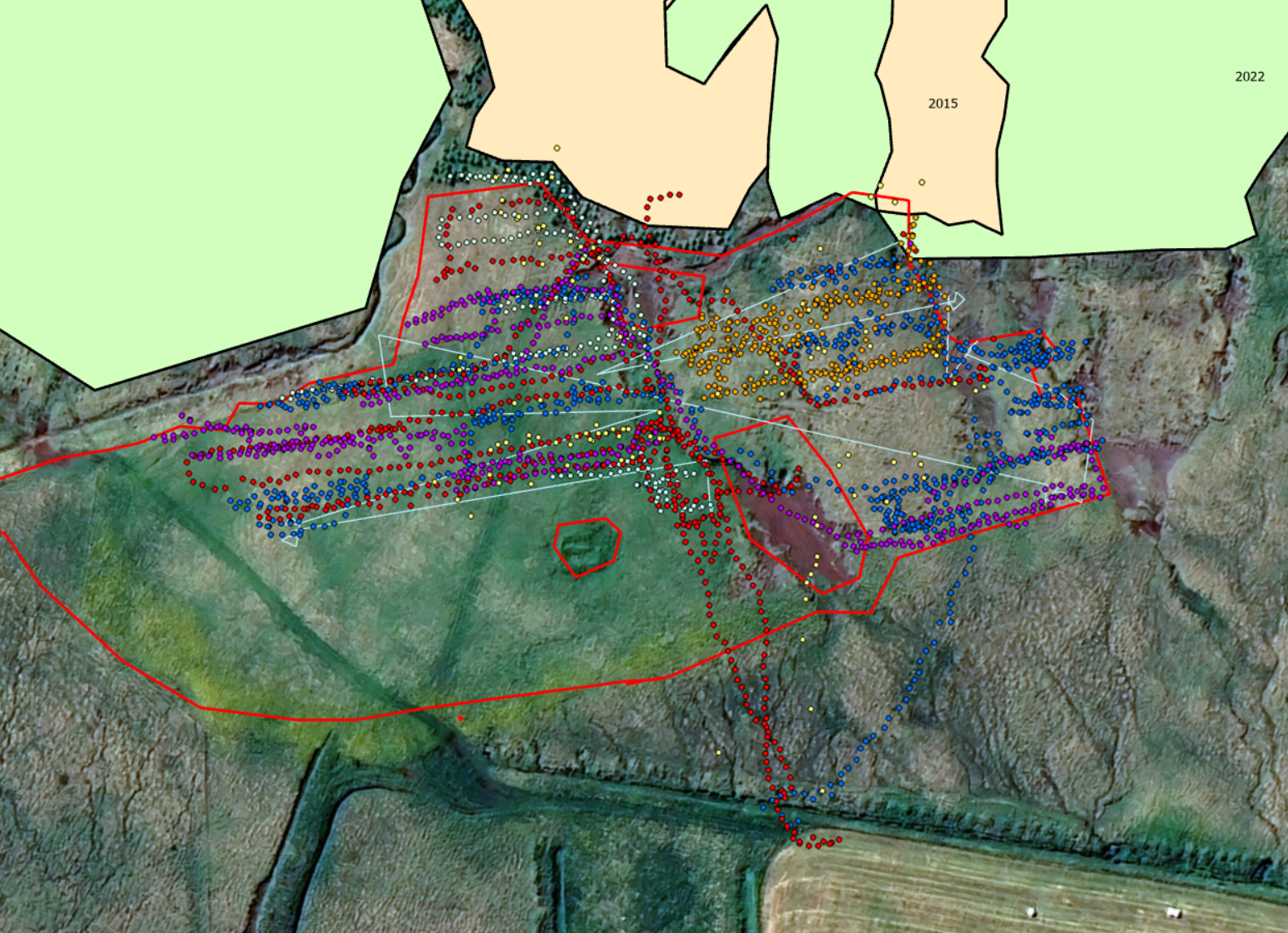 Á myndinni að ofan má sjá skjáskot af korti Avenza Maps snjallforritsins sem nemendur gátu notað til að fylgjast nákvæmlega með gróðursetningarstöðum sínum, sem síðan er skráð í ArcGIS Pro landupplýsingakerfið.
