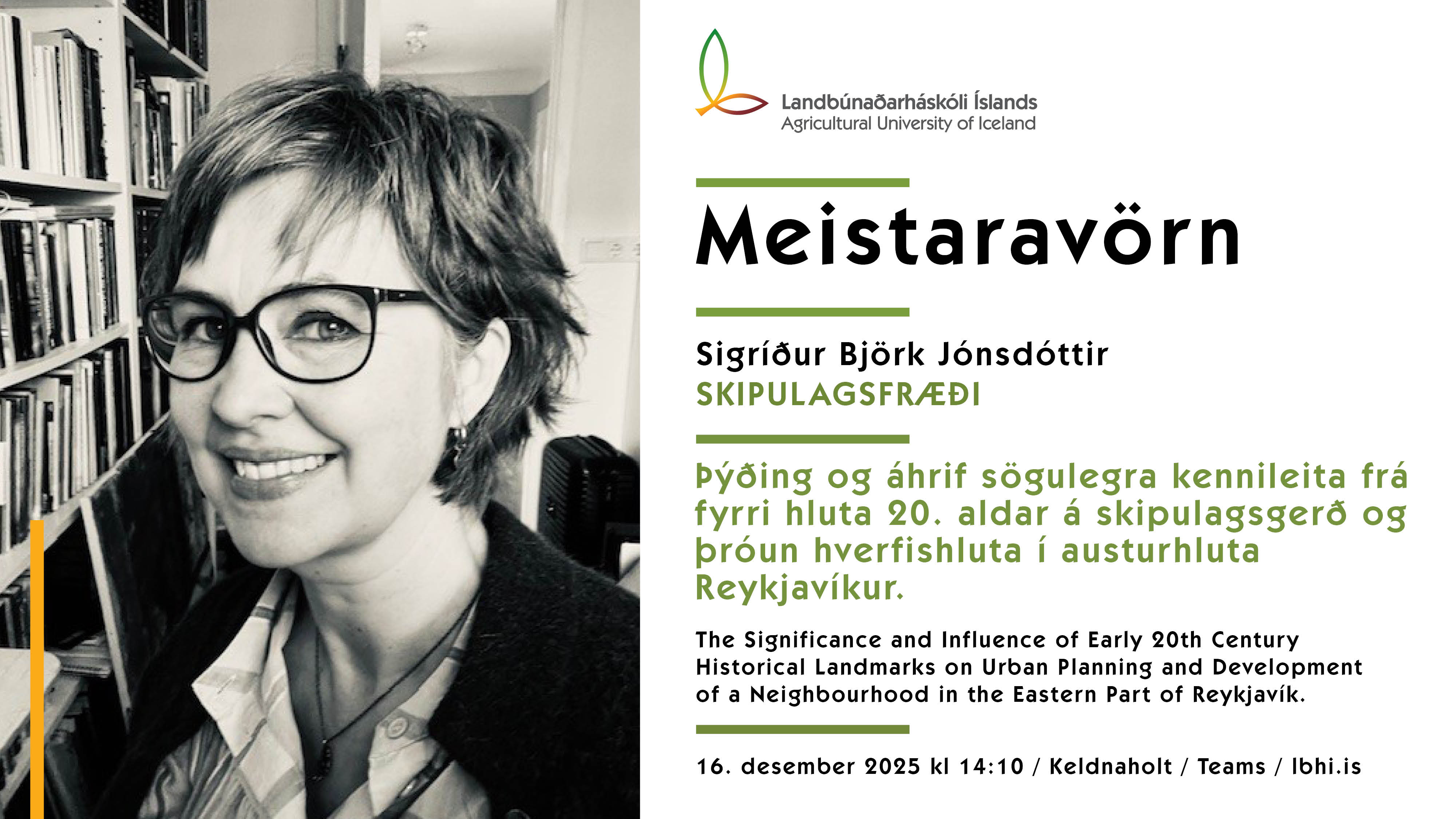 Meistaravörnin fer fram mánudaginn 16. desember 2025 kl. 14:10 í Geitaskarði, Keldnaholti, Árleyni 22 112 Reykjavík og á Teams. Hér má nálgast hlekk á vörnina. Vörnin er öllum opin.