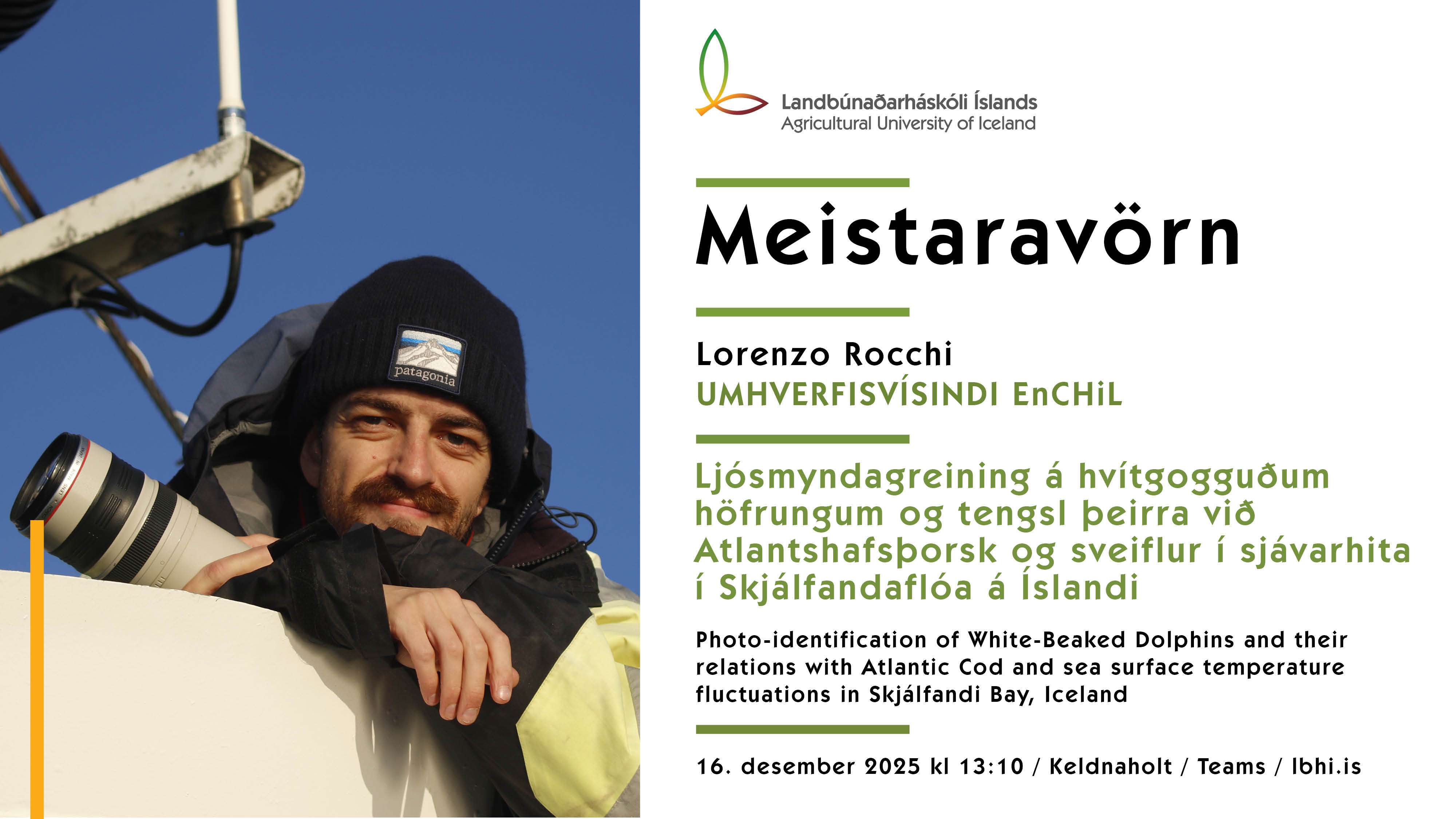 Meistaravörnin fer fram mánudaginn 16. desember 2025 kl. 13:10 í Geitaskarði, Keldnaholti, Árleyni 22 112 Reykjavík og á Teams. Hér má nálgast hlekk á vörnina. Vörnin er öllum opin.